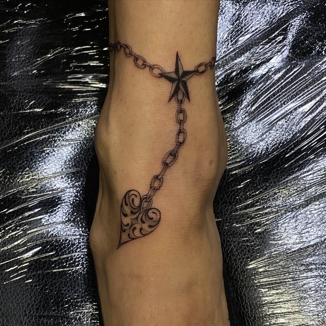 These tattoos can wrap around the ankle like real jewelry or sit as a standalone attraction with meaningful symbols. They are popular among both women and men for their elegance, subtlety, and the ability to easily hide or flare up depending on the shoes. Many people design items like Lotus Chain, Celestial Charms, Hearts, Circles, Dremcators, and Inquius, which express love, freedom, or spirituality. Others add gems, vines, or tribal motifs for cultural or personal importance. Ideal for summer or beach lovers, take the ankle bracelet tattoo out with a careless, boho-chic vibe with excellent and timeless style.
