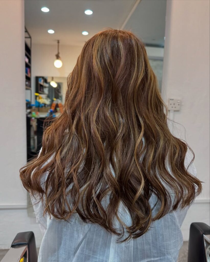 - Apply caramel hues to the mid-lengths and throughout. Then add paint.