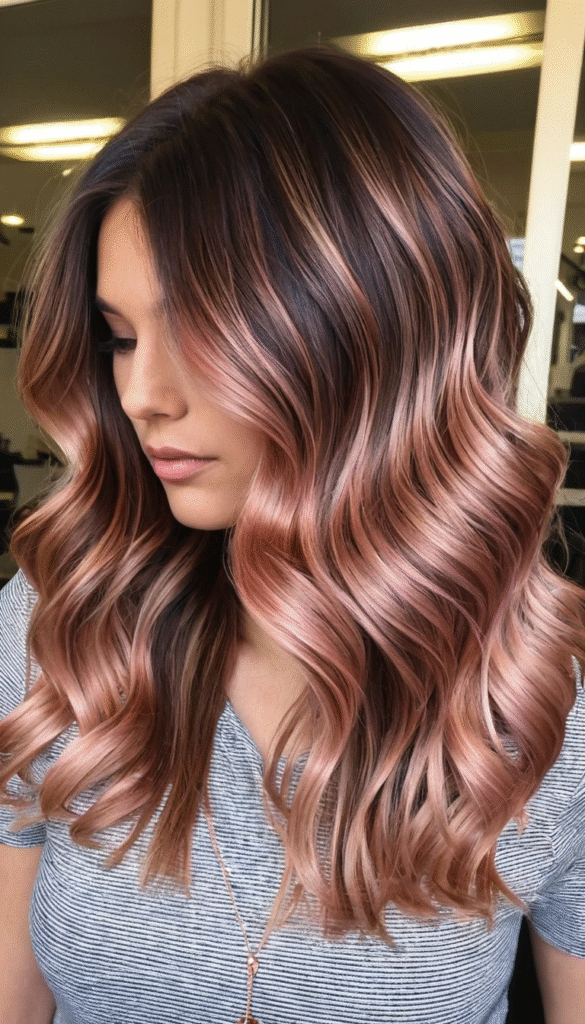- Rose gold balayage on brunette base