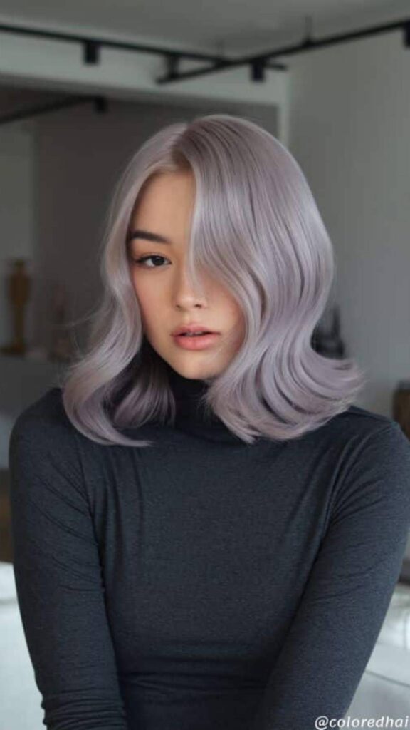 - Apply pastel blue dye to the roots before fading into lavender towards the end.