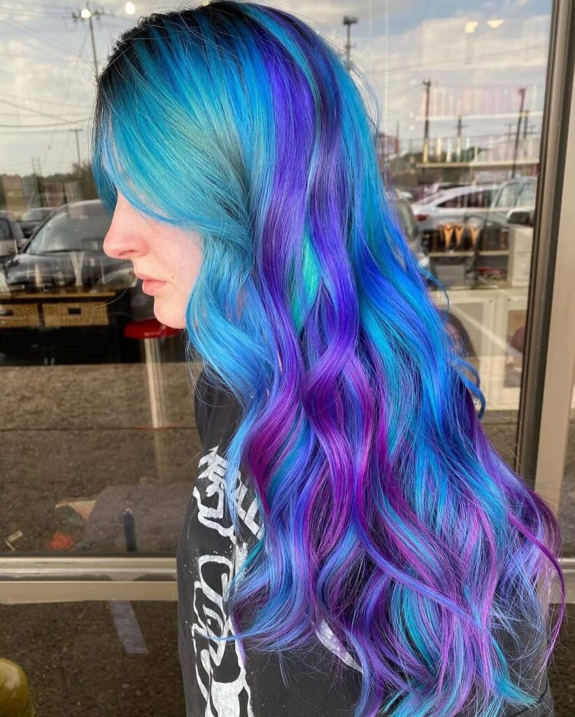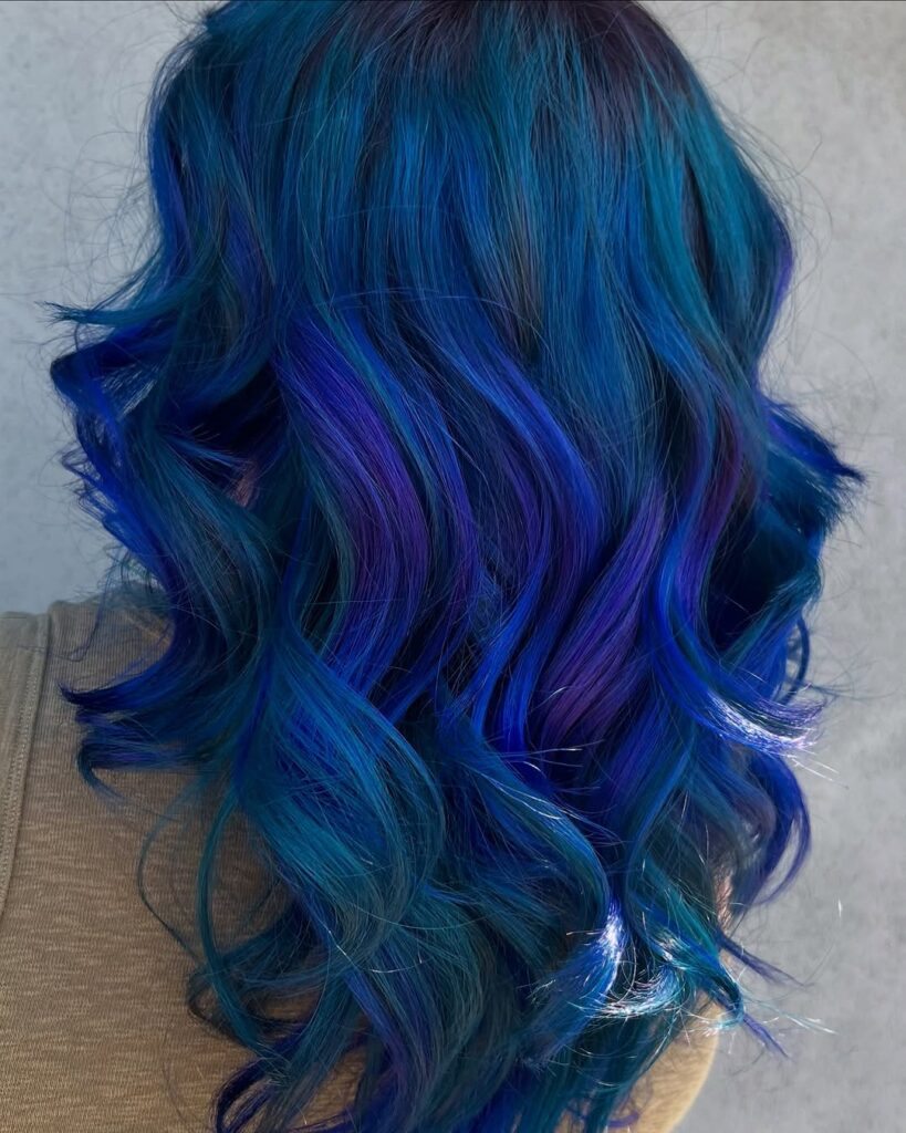 Blue and Purple Hair Ideas: By blending fantasy and fashion, blue and purple hairstyles can transform your look into a vibrant statement. These hues are versatile and can be combined to create an edgy effect, such as an old-school ombre fade, or paired with light pastel layers or a pop of neon. With its harmonious blend of blue and purple shades, they exude a sense of tranquility or calmness while embodying the essence of individuality. A palette of blue and purple colors is suitable for all hair types, from delicate pixie cuts to intricate mermaid waves.