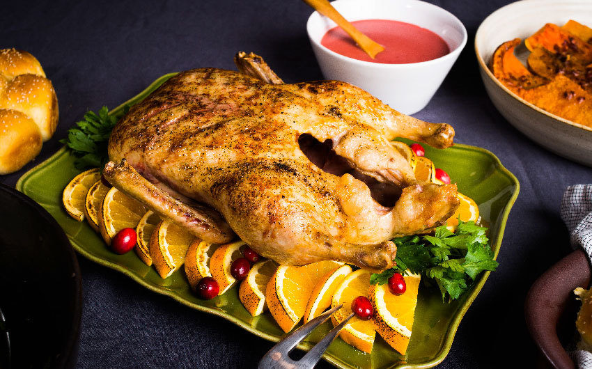 - Step 1: Score the skin of the duck and season it with salt and pepper.