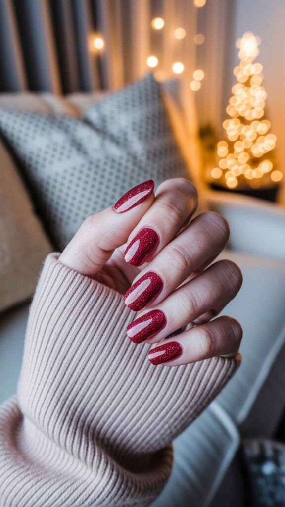 - Red Glitter Ombre – A gradual shift from solid red to sparkly tips; perfect for holiday parties.