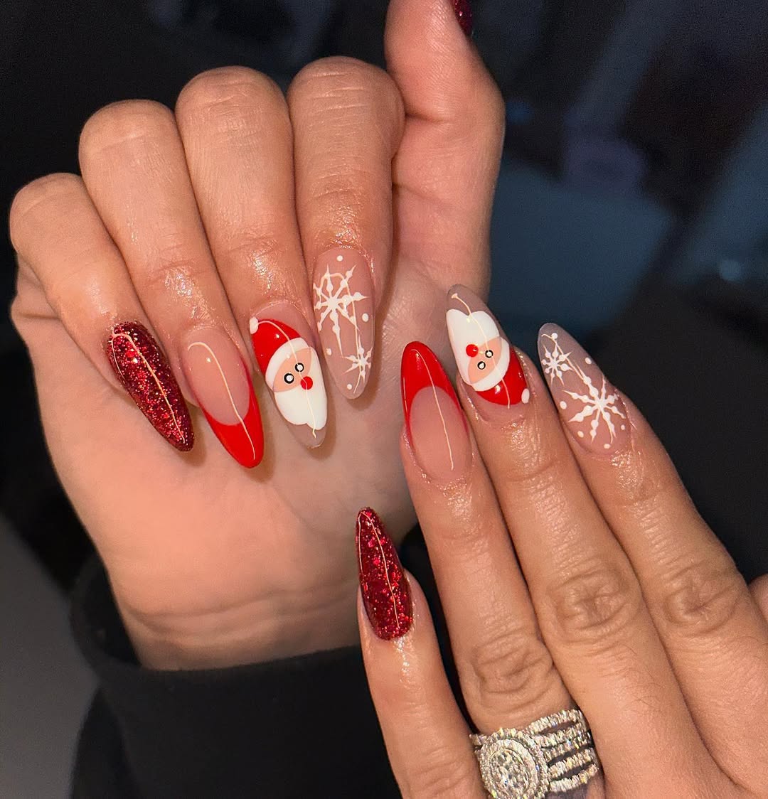 When you want simple elegance, then the simple French manicure with a small Christmas star on one nail is an ideal choice. Glossy accents are added to matte nail polish to make it look modern. In case of bold creativity, use embellishments that are 3-D, such as miniature bows or small rhinestones. These Christmas nail designs will enable you to show your Christmas mood in a cool and fashionable manner, and your hands will be prepared to attend the holiday celebrations and family events.