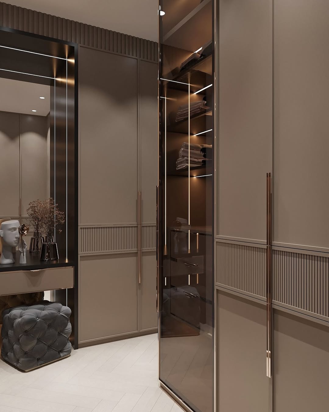 Features such as sliding doors, full-length mirrors, LED lighting, and hidden haemors combine both utility and nature. A custom closet can reflect your style with options such as a wooden finish, glass dividers, brass handles, or wallpaper interiors. The closet islands, color-coded storage, and label compartments further enhance the organization.