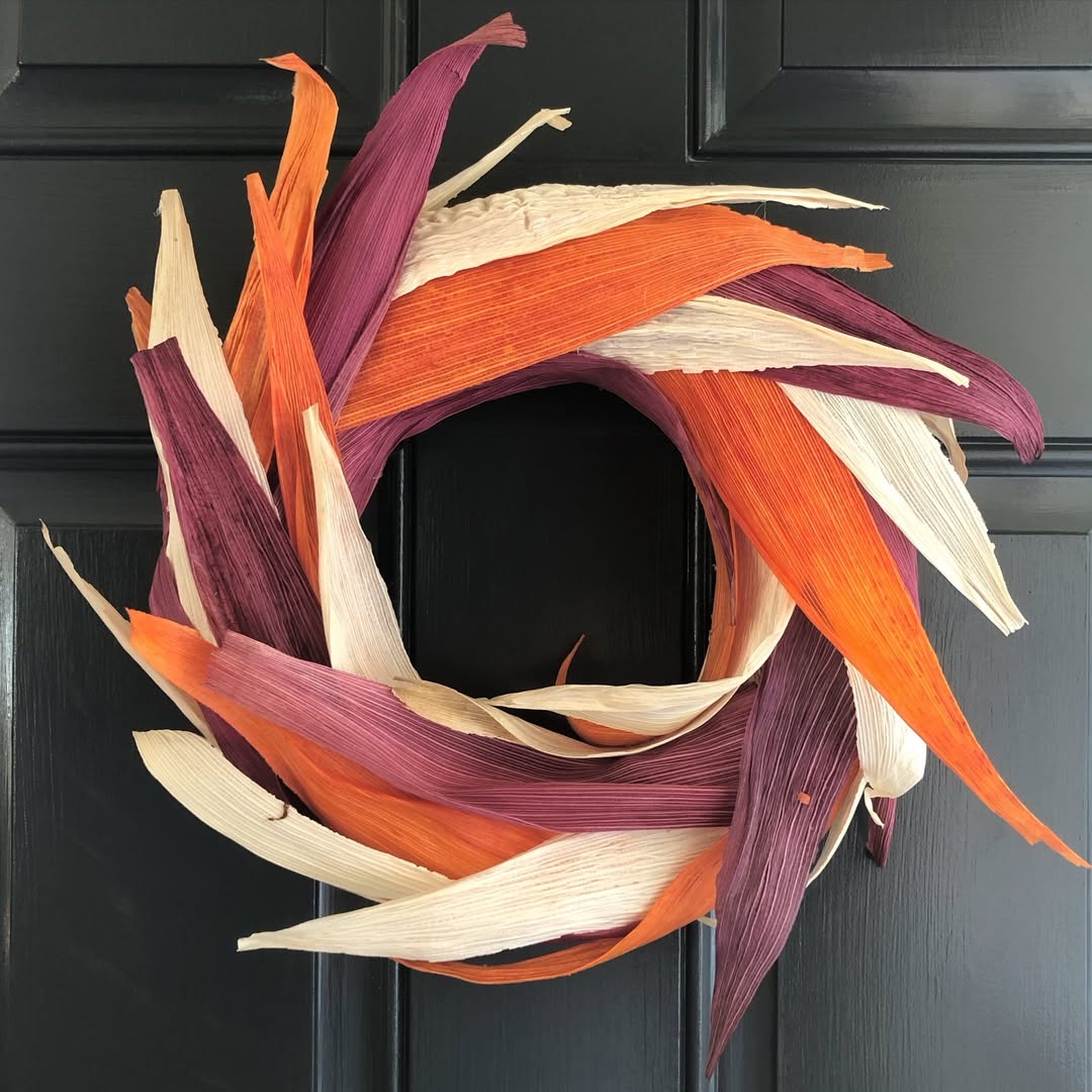 - Roll the husks over a round base of a wreath and fasten with hot glue or with floral wire.
