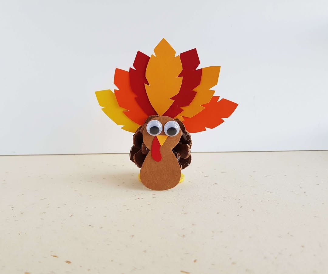 - Gather pine cones of medium to large size to form a turkey’s body.