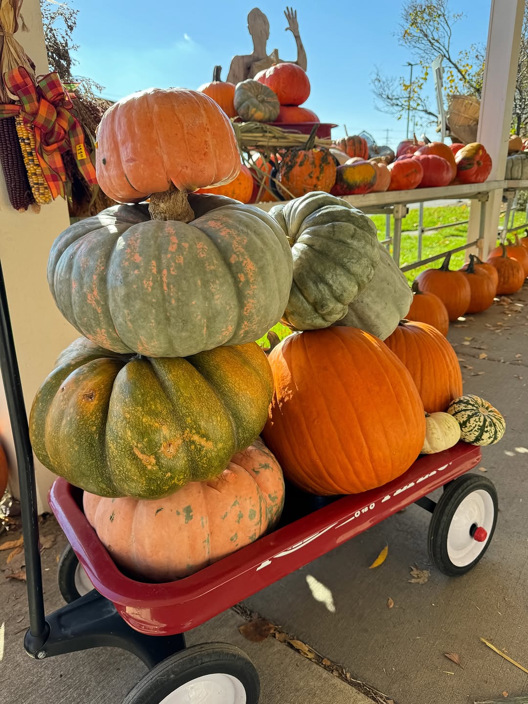 • Deck the Wagon – Stagger sizes and colors of pumpkins to decorate a small wagon for more depth.