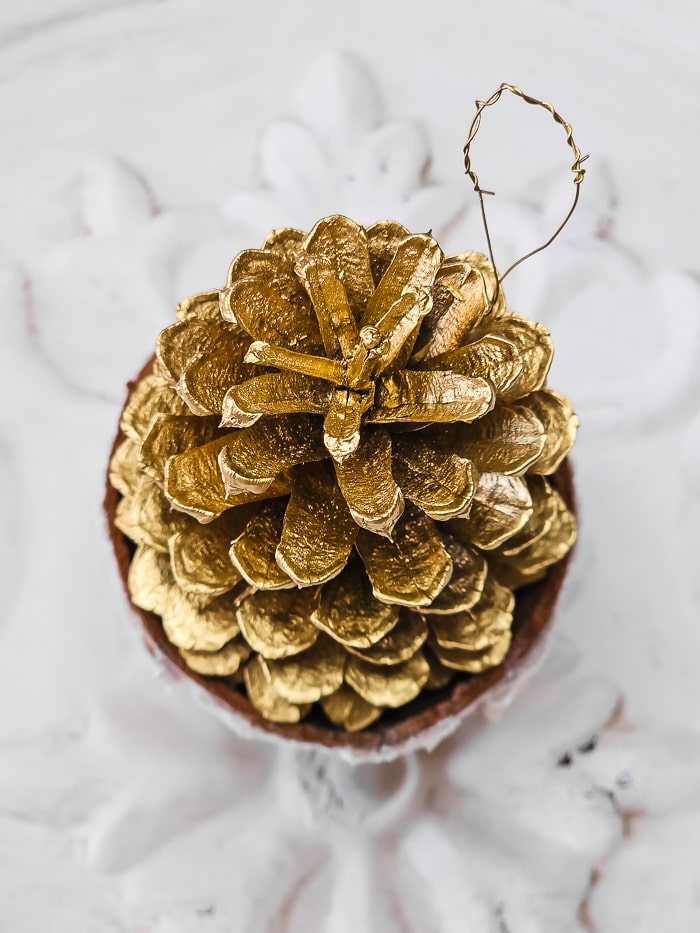 - Paint the pinecones uniformly with gold paint or spray.
