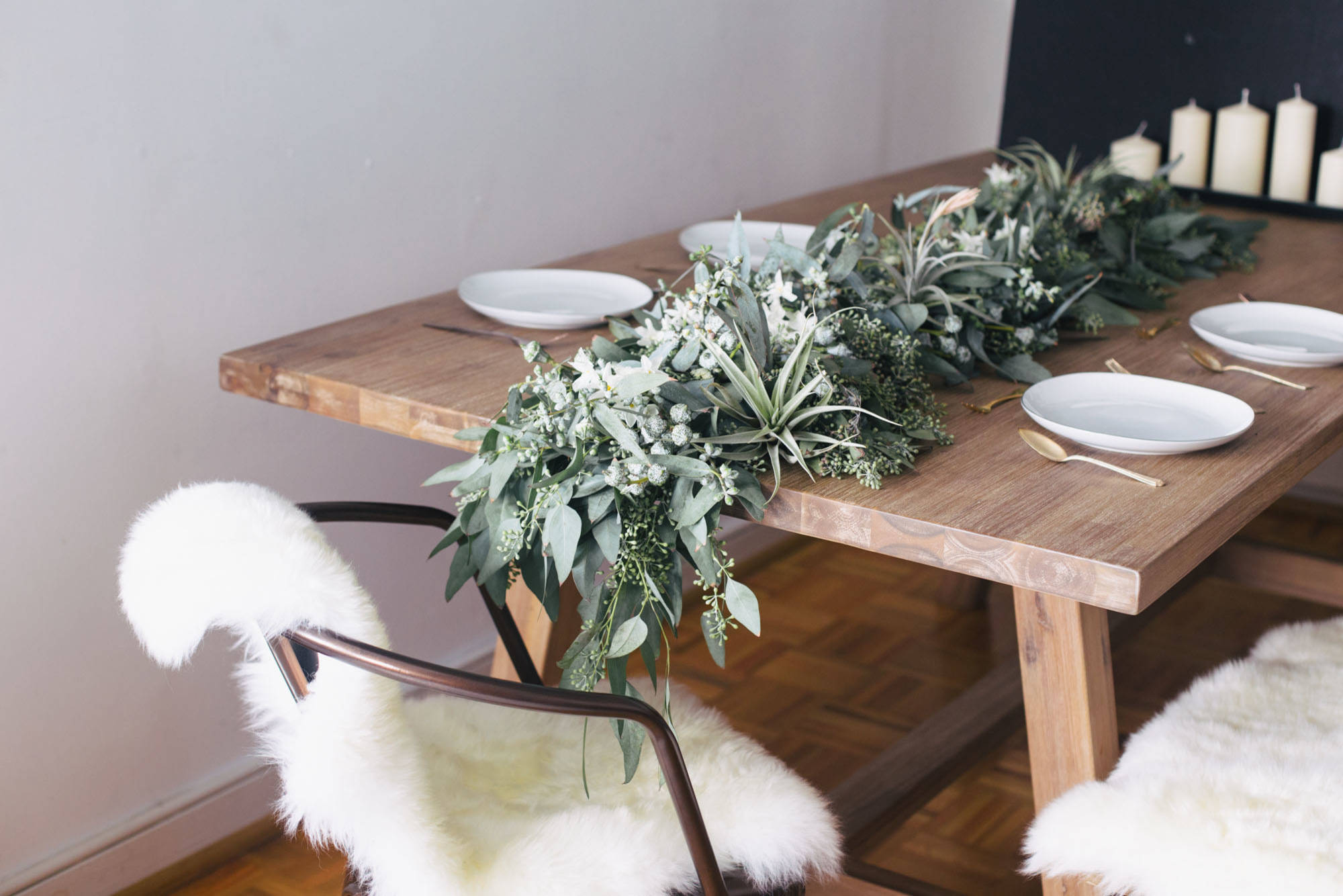 - Place them on the runner of the table.