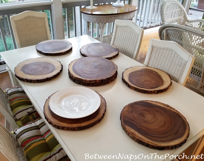 - Obtaining rustic wood slices as chargers.
