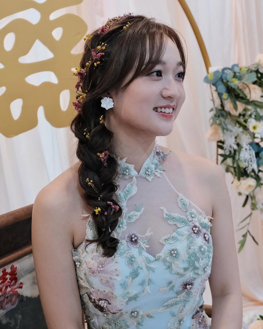 - Braided side swept bangs