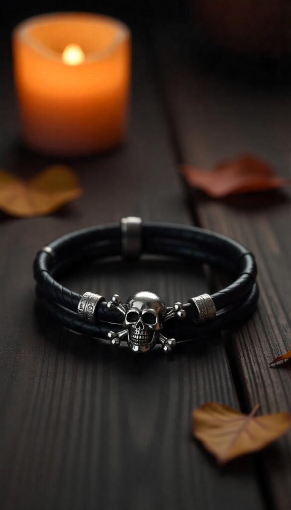 - Skull and crossbones leather band