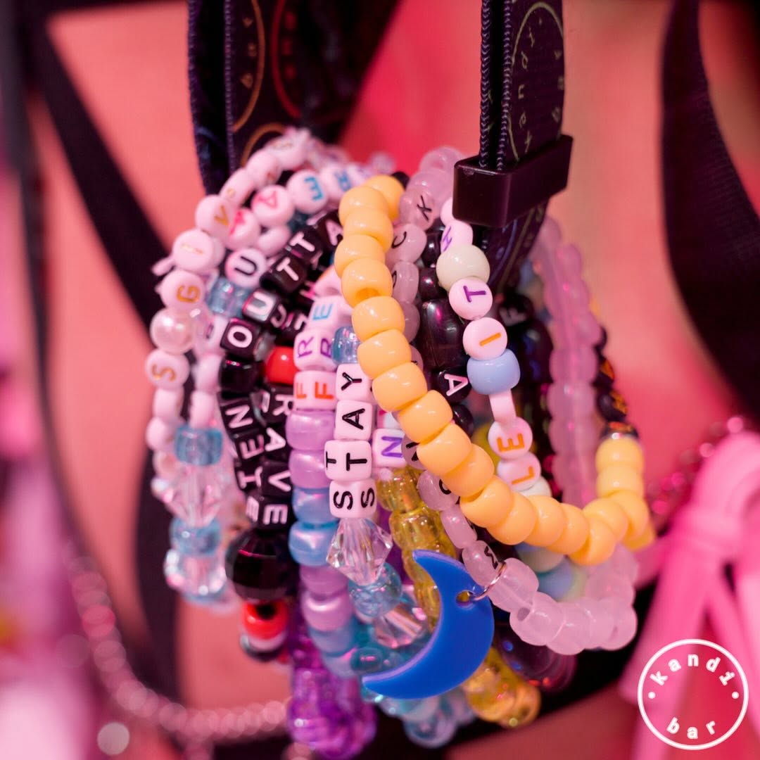 Kandi bracelets are colorful, beaded accessories, built with love and creativity, which are usually exchanged at Rush and EDM festivals as part of the Plur (peace, love, unity, respect) culture. These bracelets are usually made of pony beads and elastic string, often characteristic of names, slogans, or symbols. Beyond being fashion goods, they are tokens of friendship, positivity, and shared music experiences.