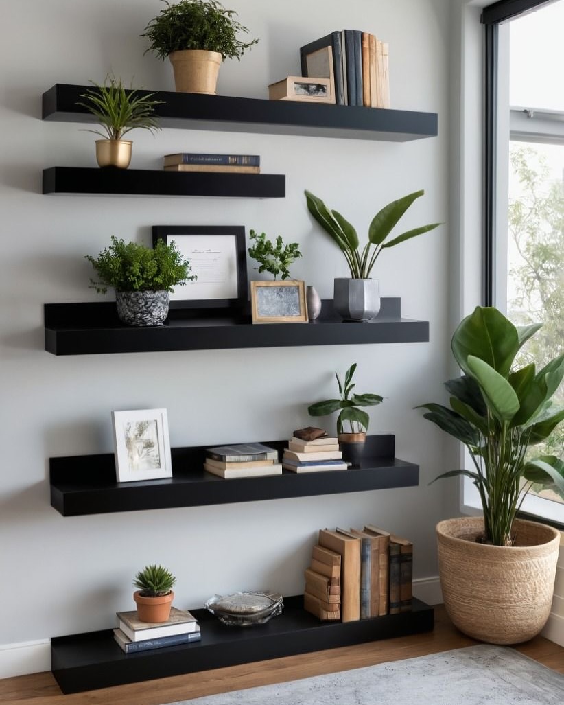 • Step 5: Decorate shelves with little items such as plants, books, or decor.