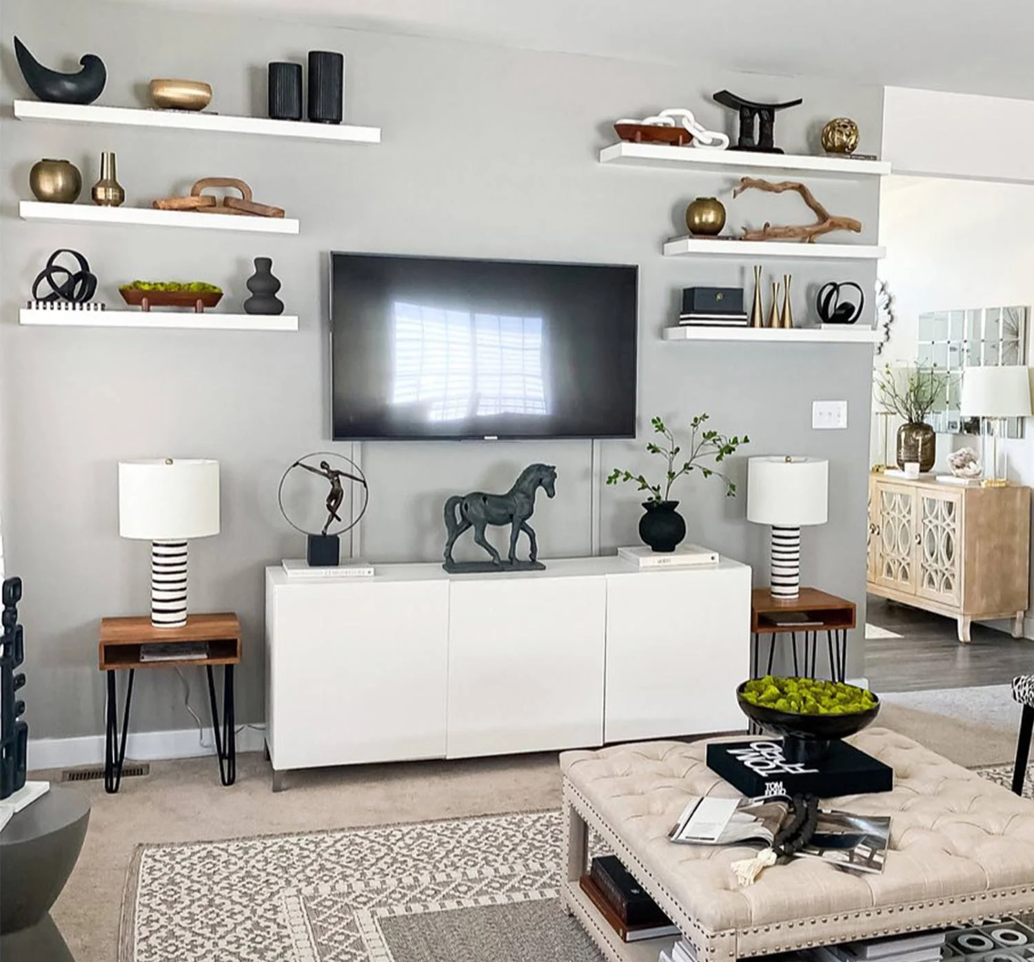 5. Floating shelves with art