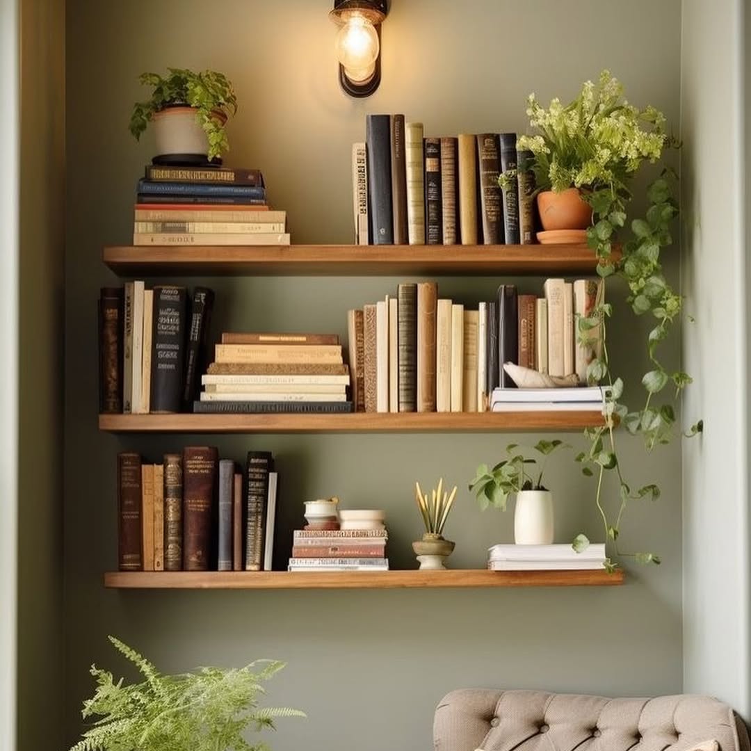 • Step 5: Decorate shelves with small decorations, books, or plants.