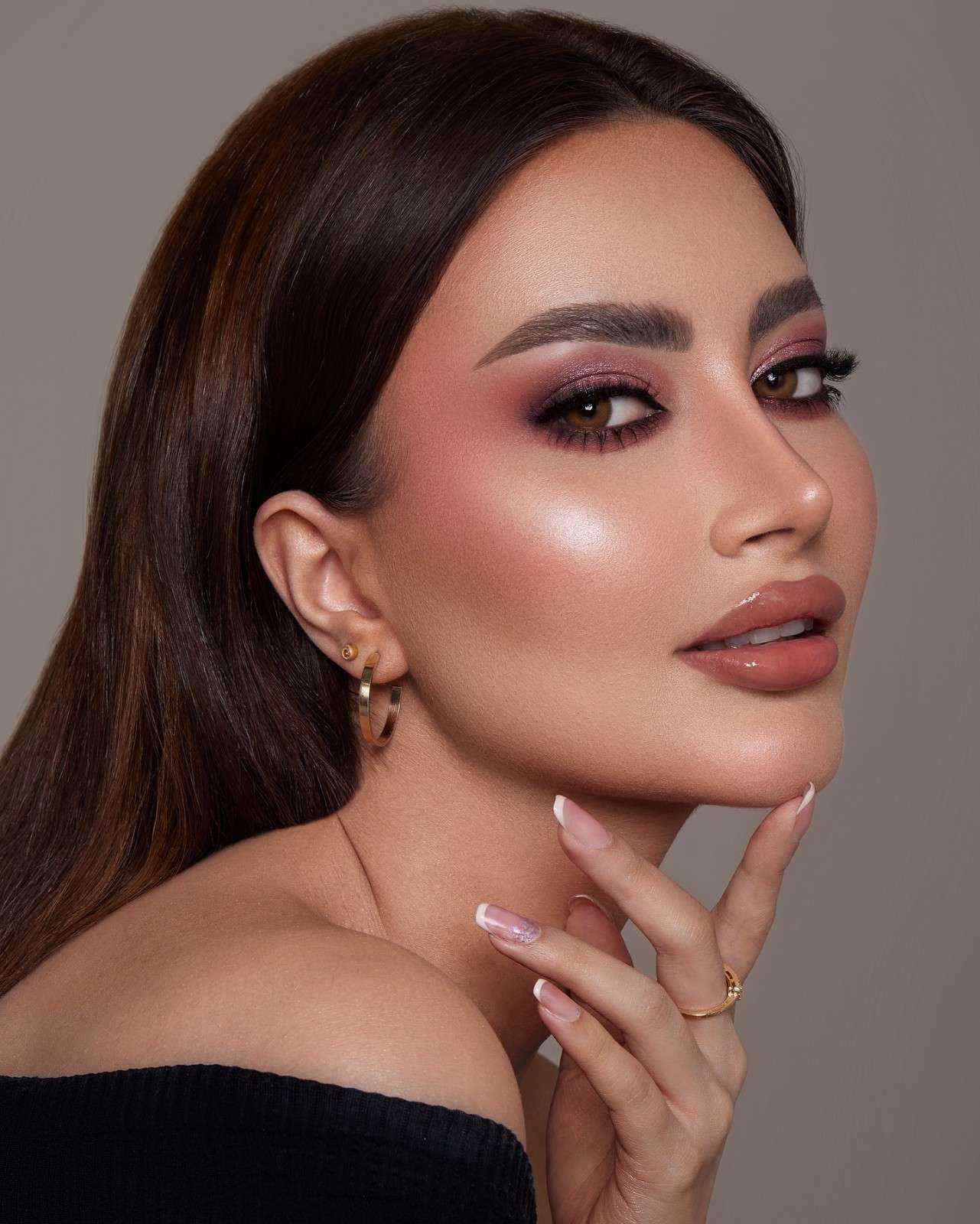 - Soft brown smoky eyes