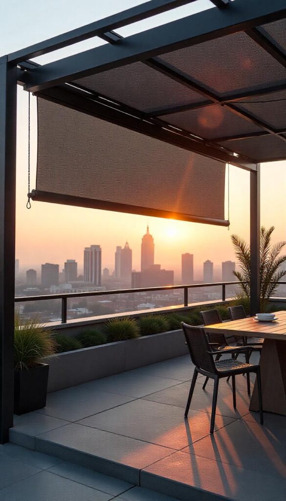 - Mount roll-up texture shades on the pergola sides.