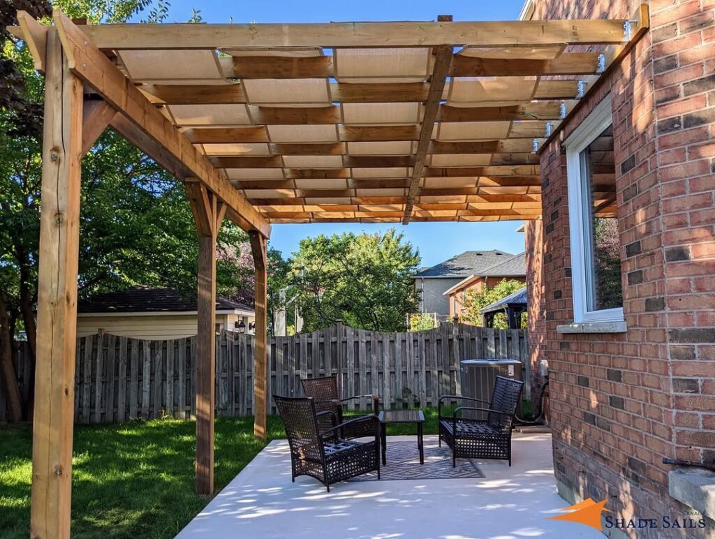 10. Shade Sail Installed Above Pergola