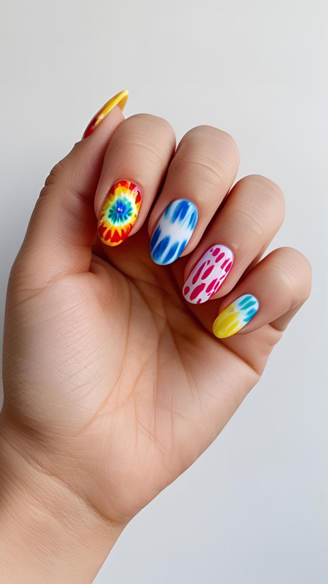 - Tie-Dye Nails — Swirled pastel or neon colors reminiscent of summer fest vibes.
