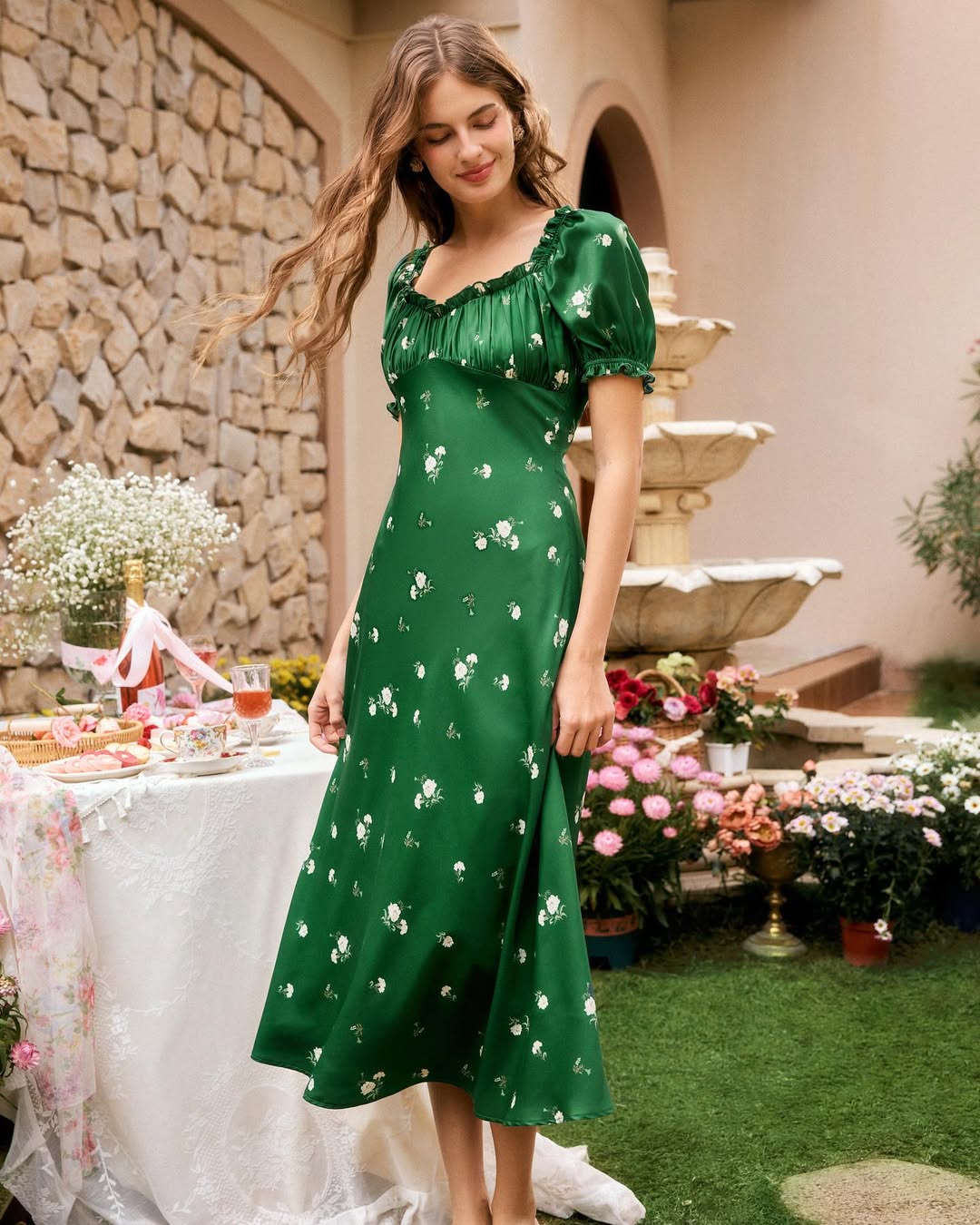 - Include earrings – Earrings in gold or emerald will emphasize the dress color.