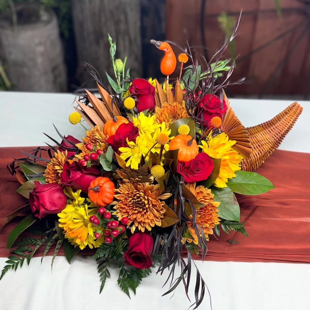 4. Cornucopia Centerpieces Near Seating