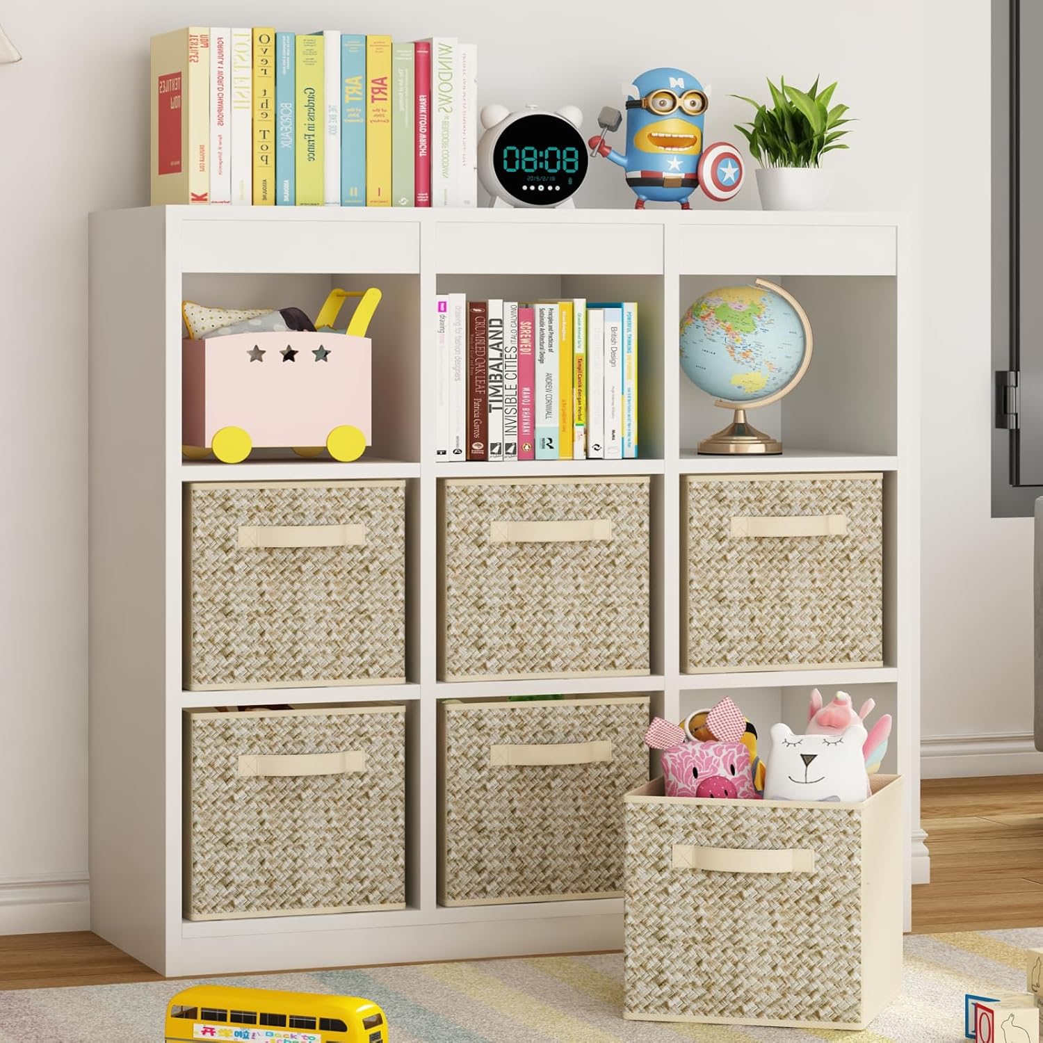 Bins or cloth cubes in cabinets are an easy way of organizing things without the cluttered look. Rolling carts are adjustable and can be taken away whenever they are not in use. A mix of practicality and beauty will enable you to have a clean living room with toys that are accessible during play without having to clutter the room.