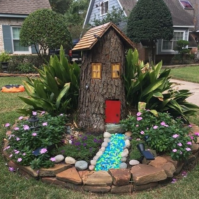Decorating Ideas Tree Stump are the ideas that are suitable for adding a rustic and creative look to your garden or house. It should be seen by first sanding the stump surface and covering it with weatherproof paint or sealant. It can be made into a little table: simply put a glass top over the stump, or a piece of smooth wood. Have colorful flowers or succulents that are planted around the stump to appear natural.