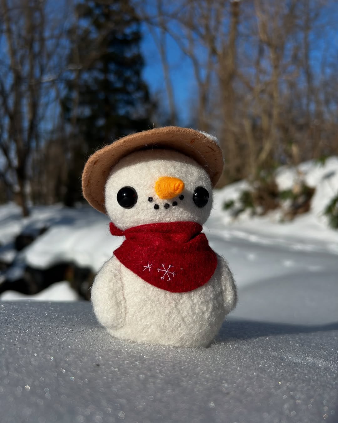 - Wearing black buttons or fabric pieces on the eyes and coal buttons on the body.