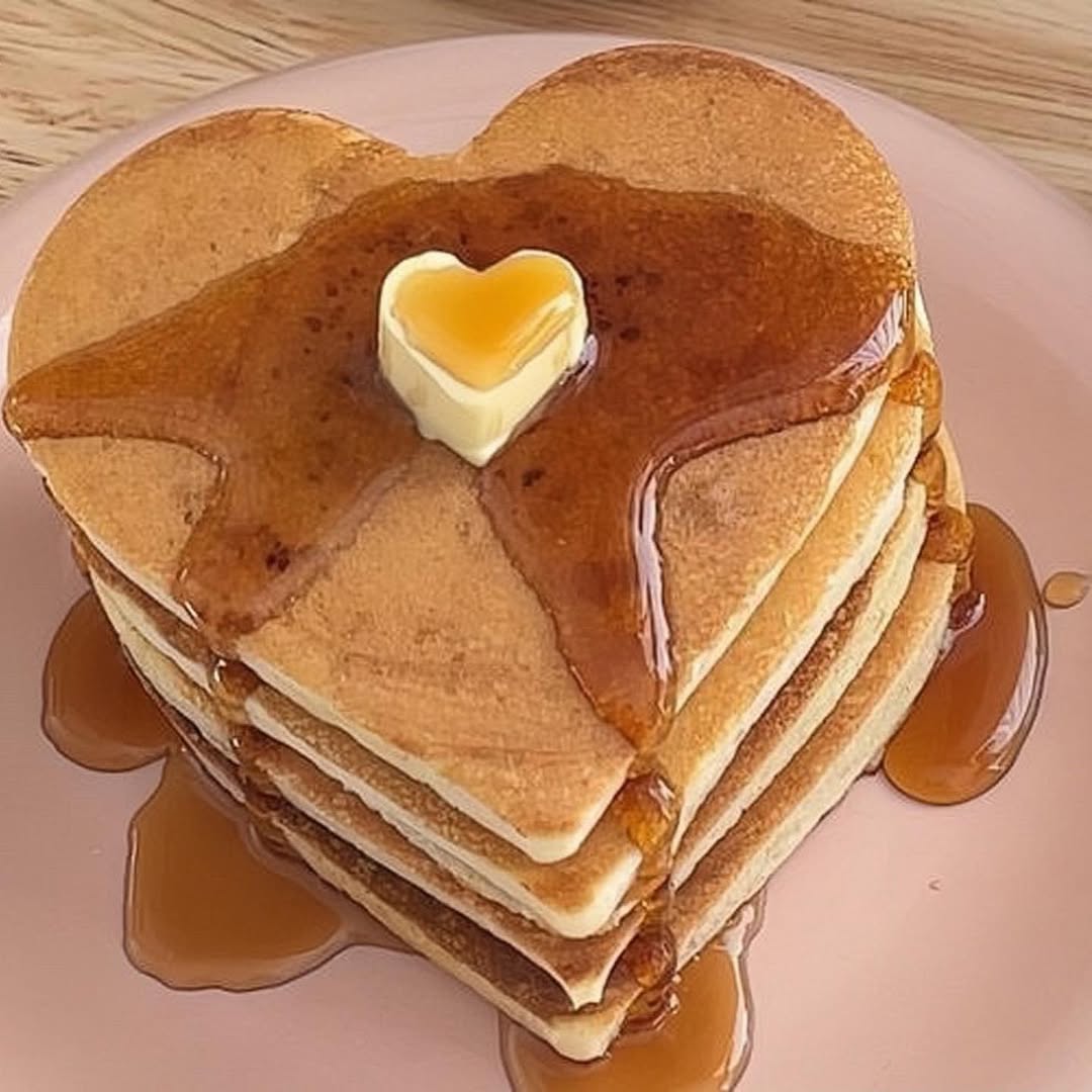Classic Heart-Shaped Pancakes with Maple Syrup