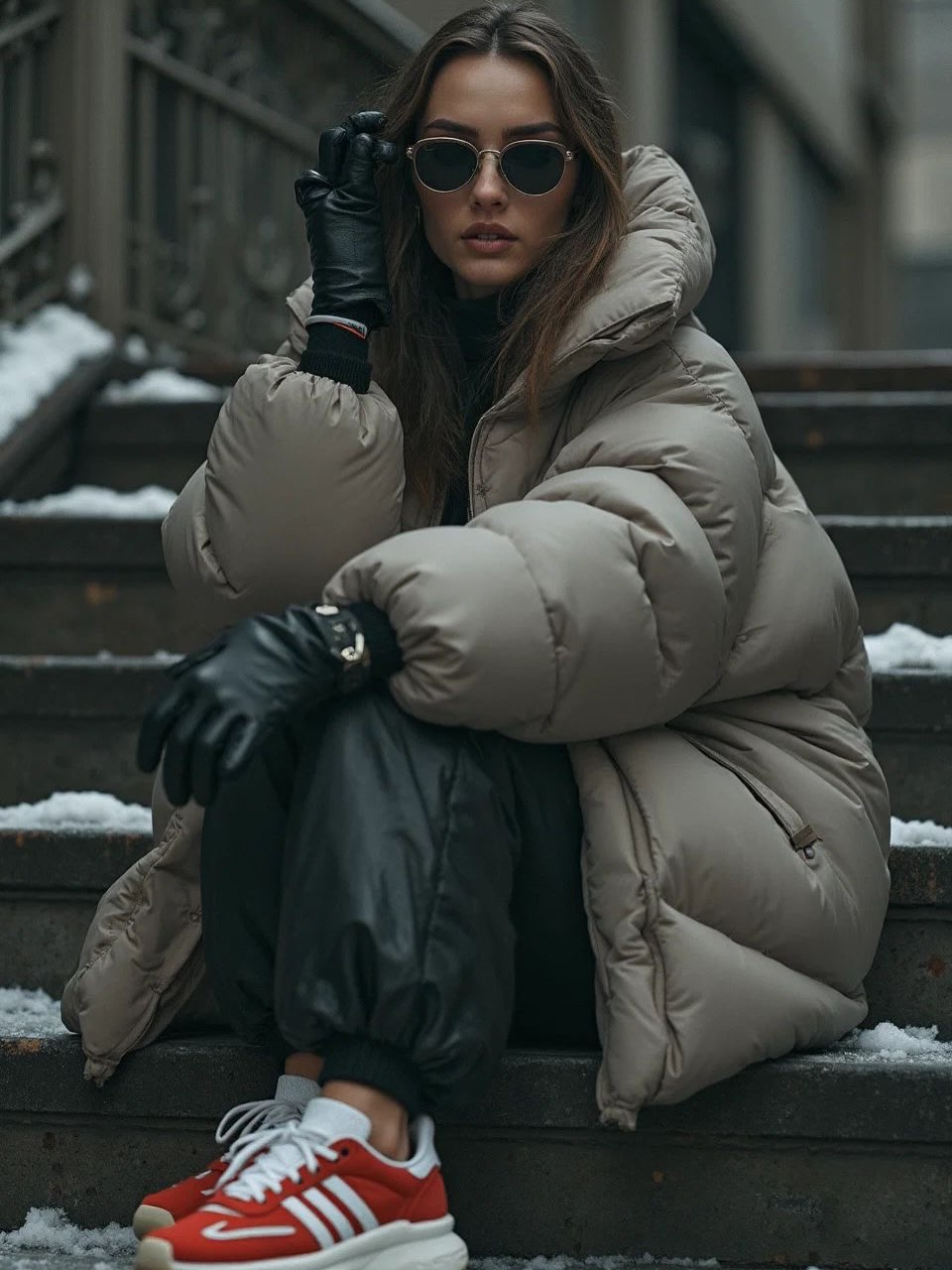 - Step 1: Select a puffer jacket that is long and neutral or bold in winter.