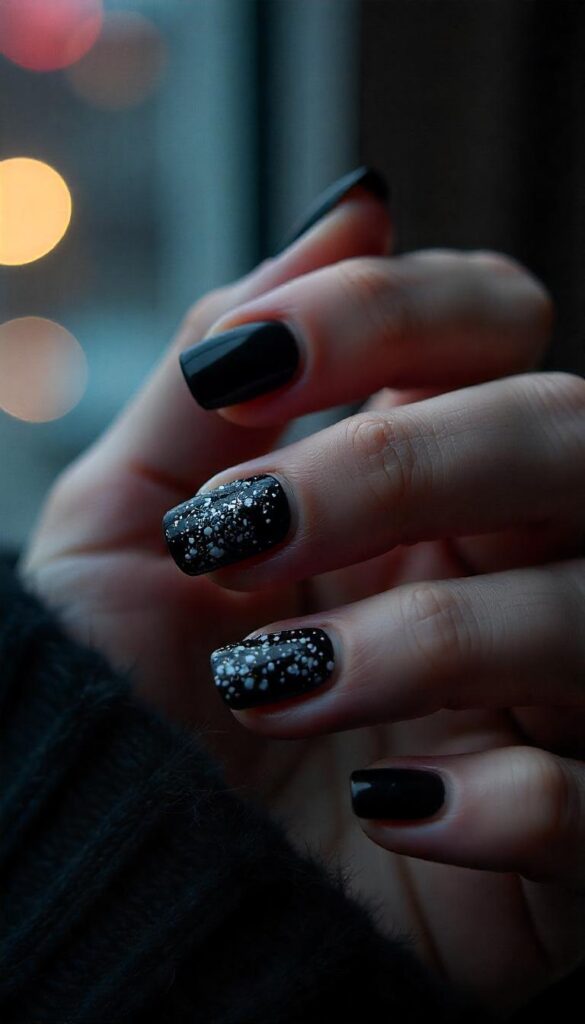 - Snow globe-inspired glitter nails
