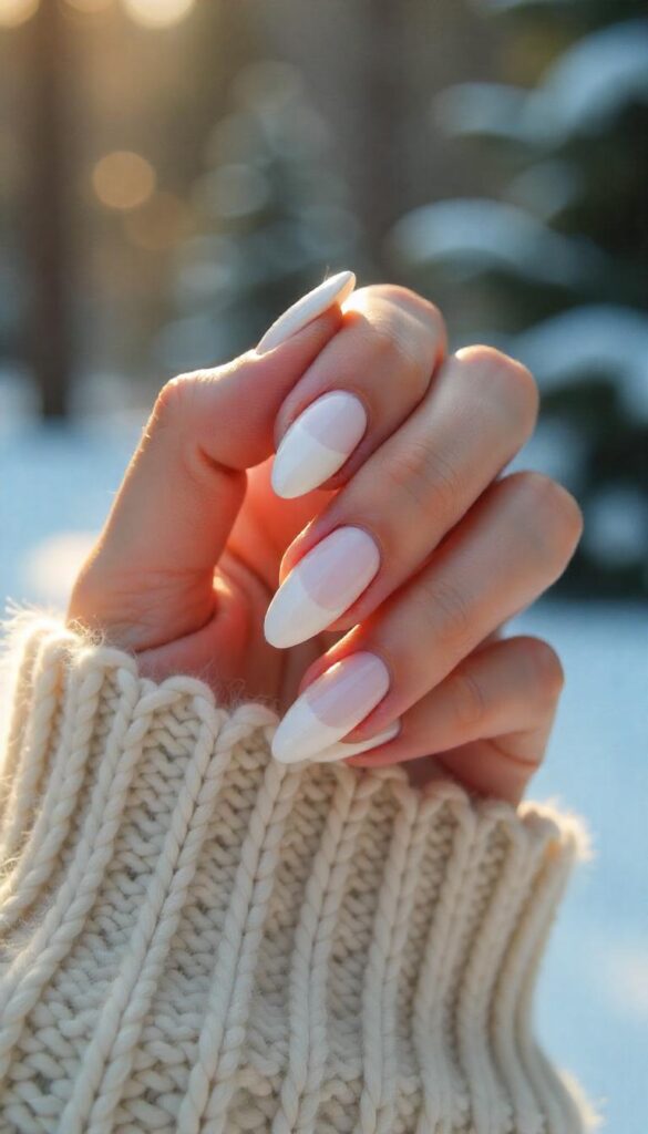 - Frosted white almond nails