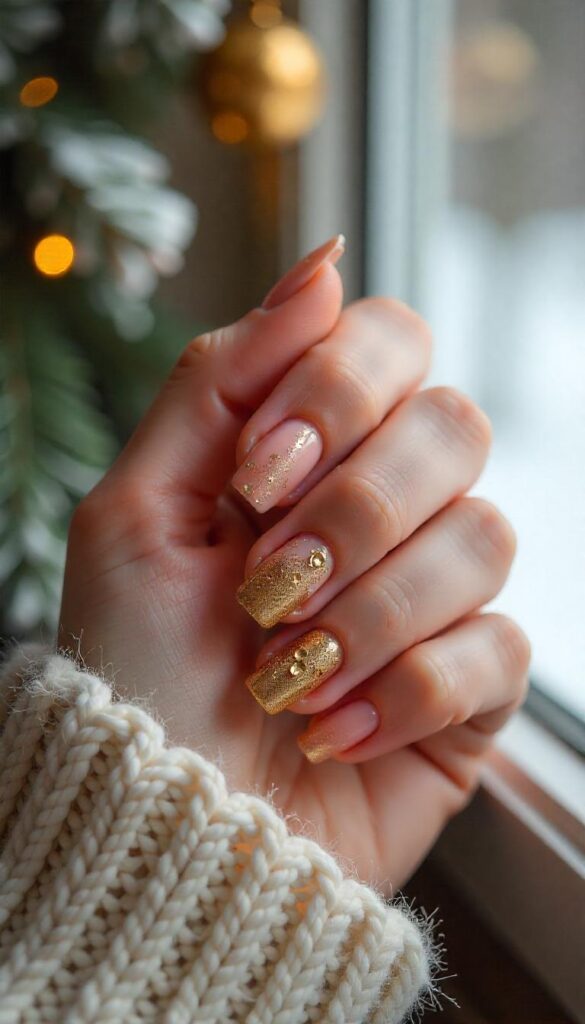- Gold glitter French tips