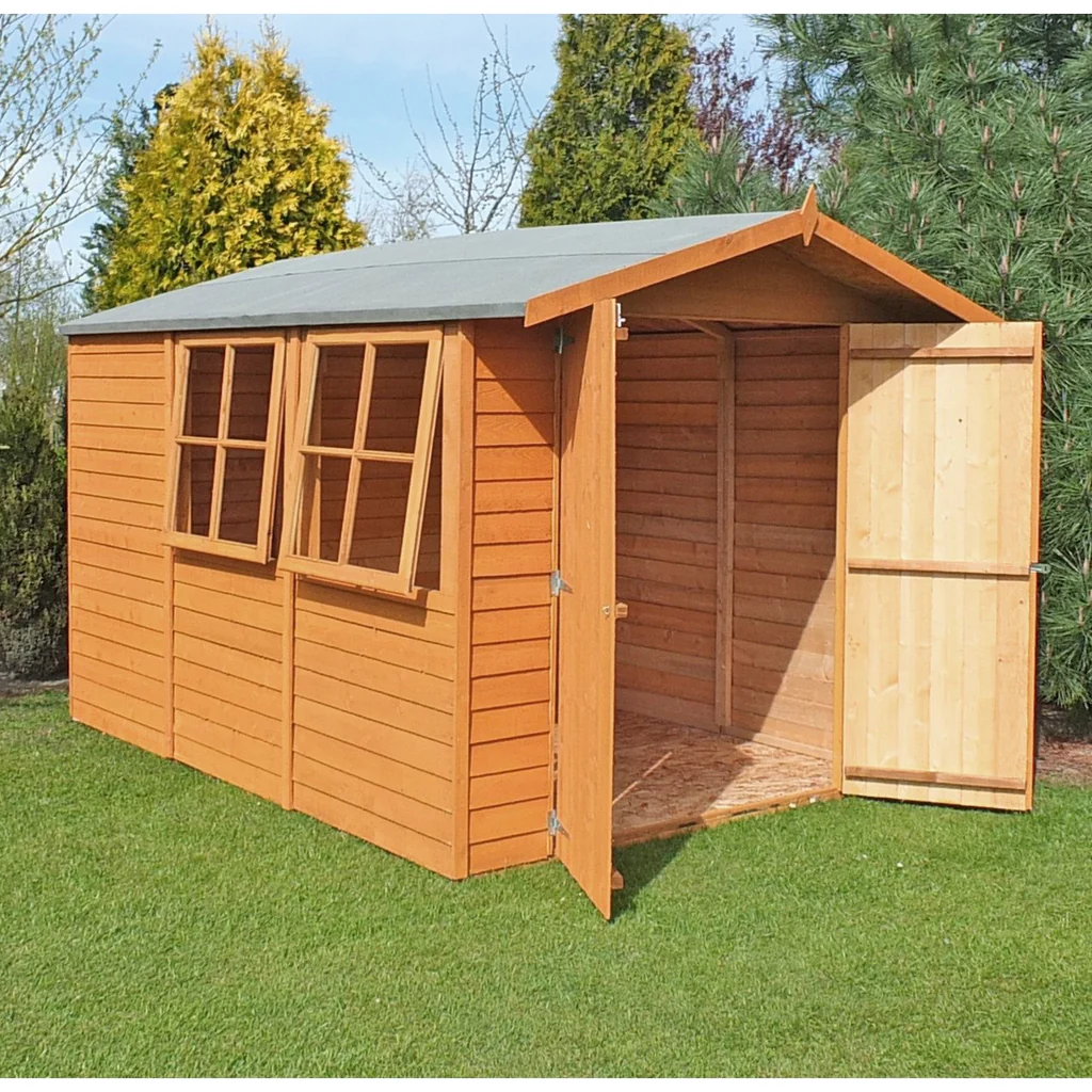 - Classic gable-roof wood shed